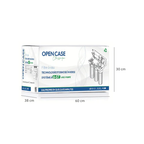 Le filtre eau Open Case est une solution de filtration osmose inverse performante, conçue pour garantir une eau potable de haute qualité. Grâce à son design compact et sa technologie avancée, il élimine jusqu’à 99 % des impuretés, y compris le chlore, les nitrates, les métaux lourds et autres contaminants. Ce modèle s’installe facilement sous l’évier, offrant une solution pratique et efficace pour un usage domestique et professionnel.